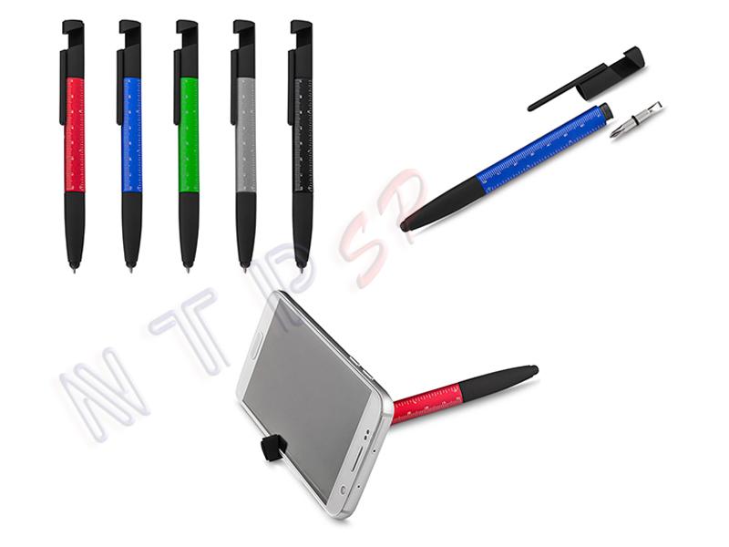 Com ponta touch para smartphone, suporte de apoio para celular, clip limpador de tela, régua 7 cm, mini chave de duas pontas (Fenda e Philips).